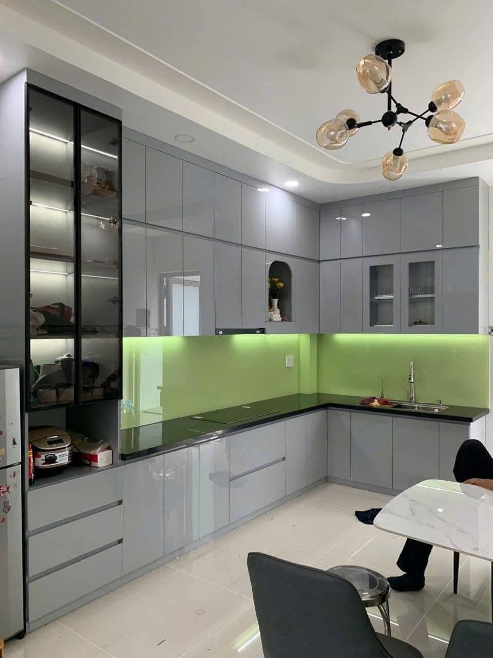 • Bếp hệ chữ U, có quầy rượu trang trí.